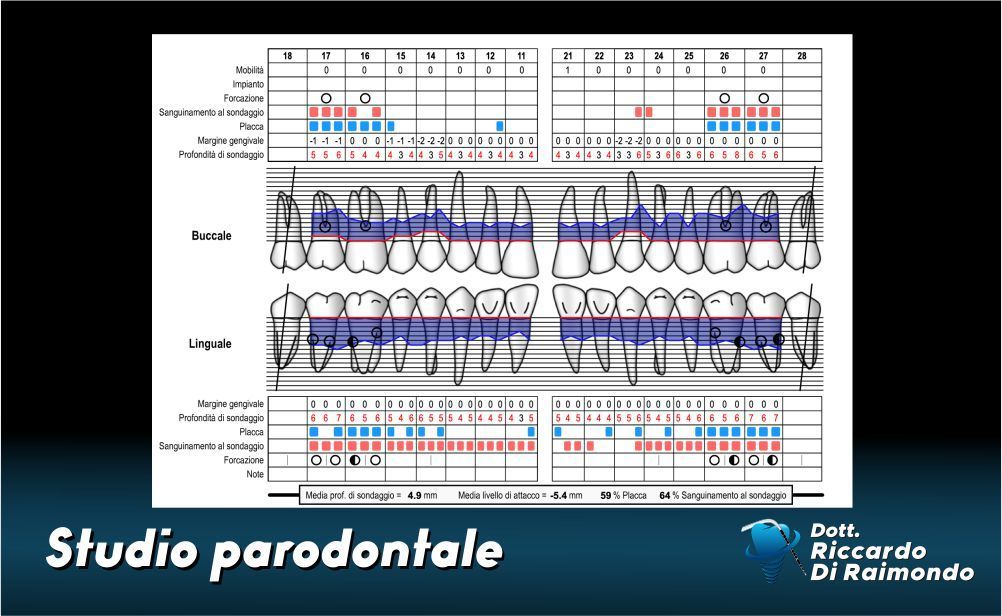 Il Dott. Riccardo Di Raimondo, specializzato in parodontologia e implantologia, considera lo studio parodontale il punto di partenza per valutare lo stato parodontale dei suoi pazienti, con l’obiettivo di mantenere la salute parodontale e ripristinarla in caso di parodontite già presente.